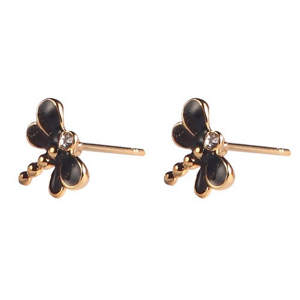 Stud earring enamel dragonfly black gold