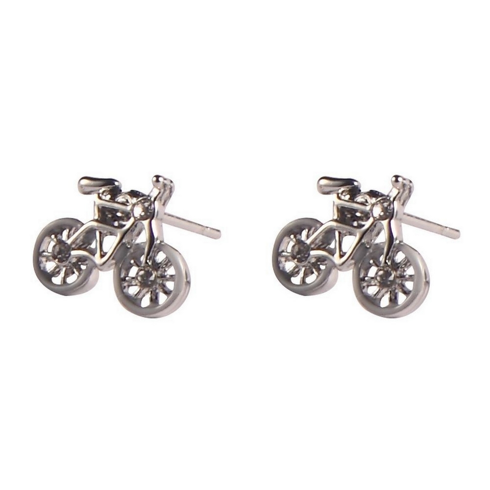 Stud earring enamel bicycle white silver
