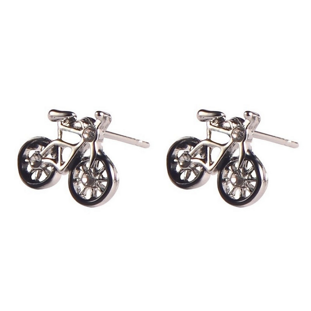 Stud earring enamel bicycle black silver