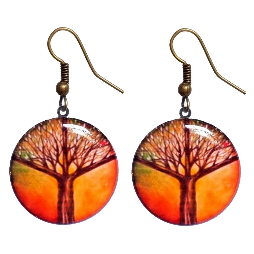 Drop earring acrylic printed tree orange