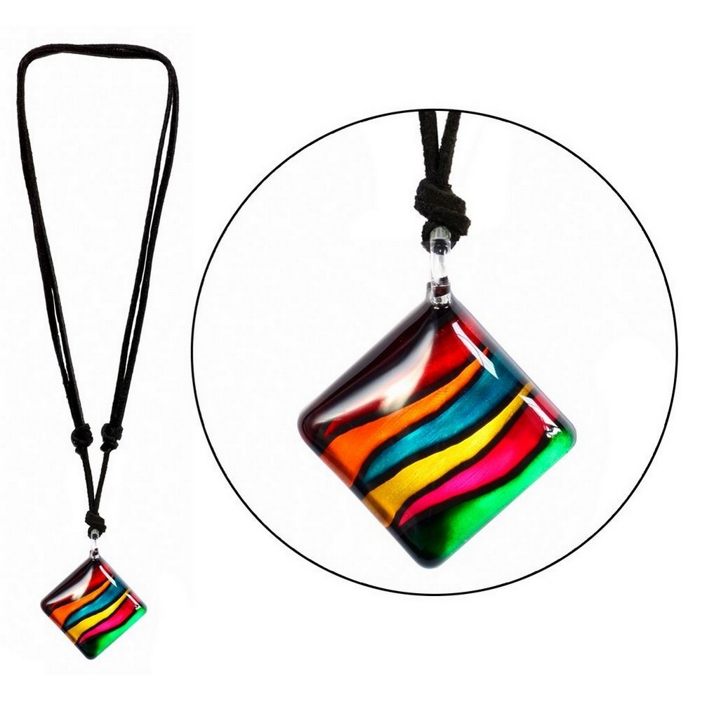 Necklace With A Pendant Art Vibe Made With Glass & Suede