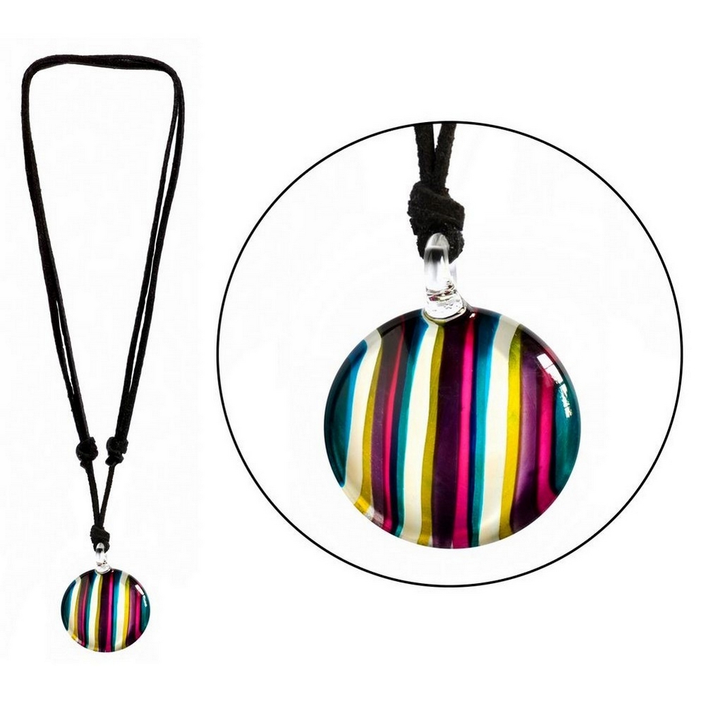 Necklace With A Pendant Art Vibe Made With Glass & Suede