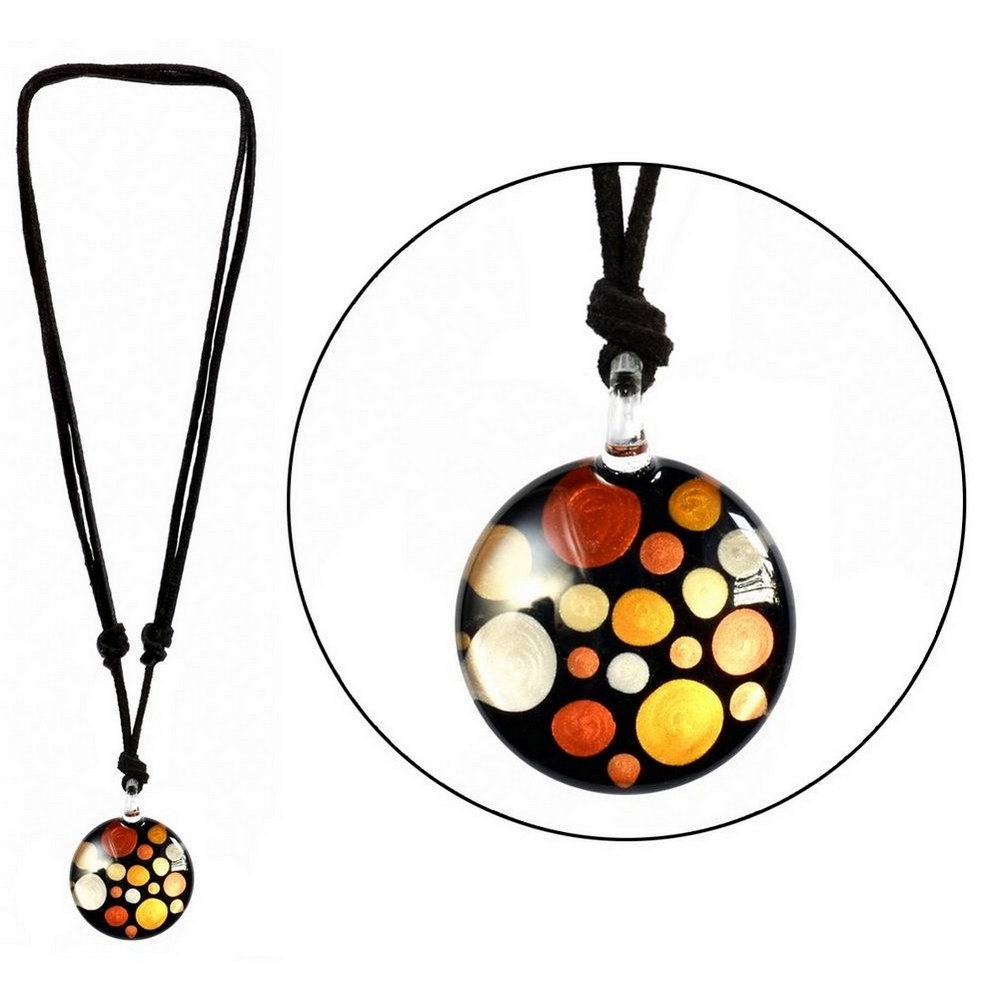 Necklace With A Pendant Art Vibe Made With Glass & Suede