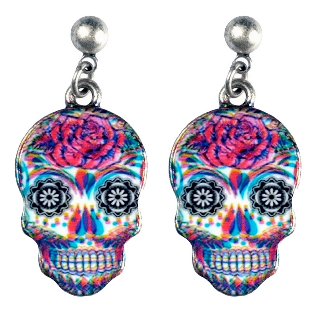 Be the first to review “Stud & drop earring enamel skull blue with pink flower”