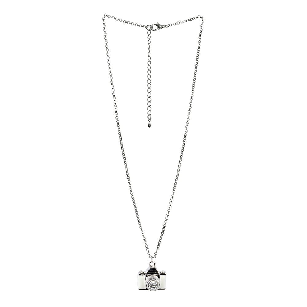 Necklace With A Pendant Camera Made With Crystal Glass & Enamel