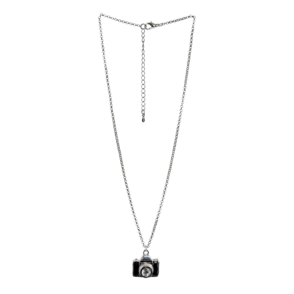 Necklace With A Pendant Camera Made With Crystal Glass & Enamel