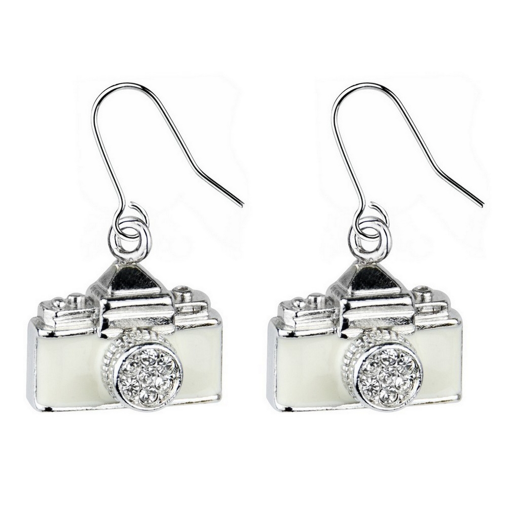 Drop Earring Camera Made With Crystal Glass & Enamel