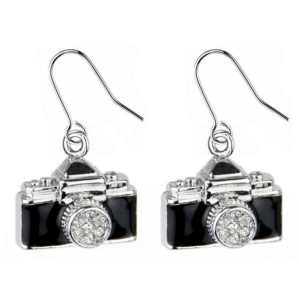 Drop Earring Camera Made With Crystal Glass & Enamel