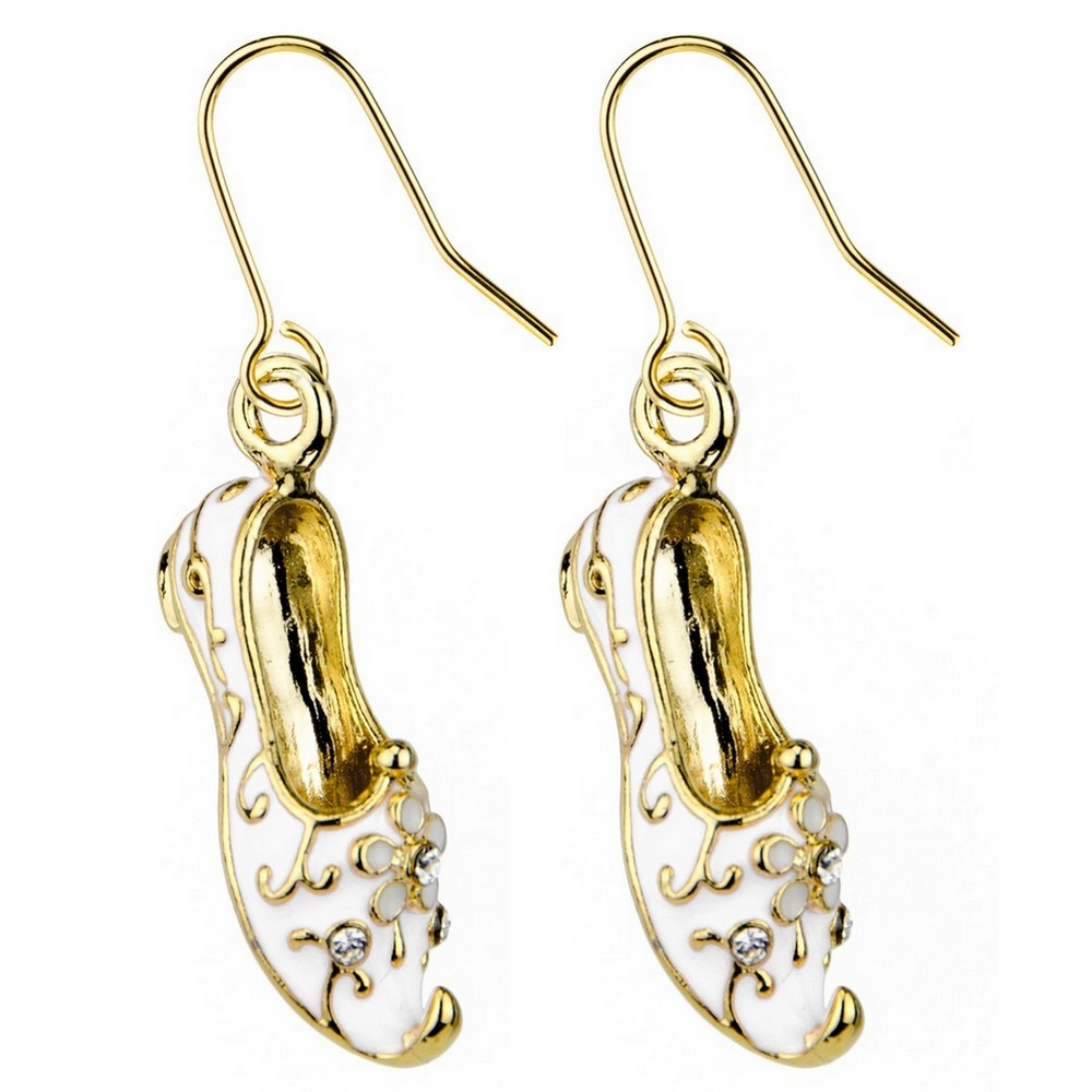Drop Earring Ornate Slipper Made With Crystal Glass & Enamel