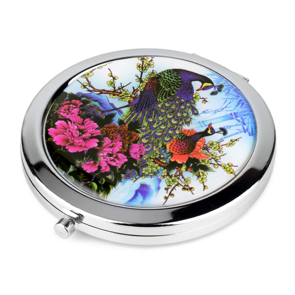 Let your imagination soar with the natural beauty of this amazing peacock compact mirror. Let this take you on a wonderful floral fancy. Make this item a key piece of your wardrobe. Let Joe Cool take you on a journey through the garden with this fantastic Compact mirror.