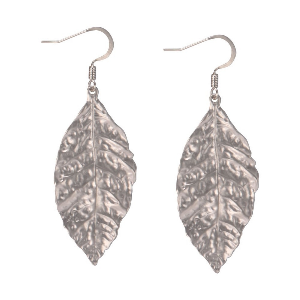 Crafted from a resilient tin alloy, each earring is meticulously hammered, creating a surface alive with subtle undulations that catch the light like dew on a morning leaf. The organic silhouette, reminiscent of a fallen autumn specimen, feels both substantial and delicate, a testament to artisan skill. Its cool, metallic sheen offers a sophisticated counterpoint to the warmth of skin, inviting a tactile appreciation of its unique texture.