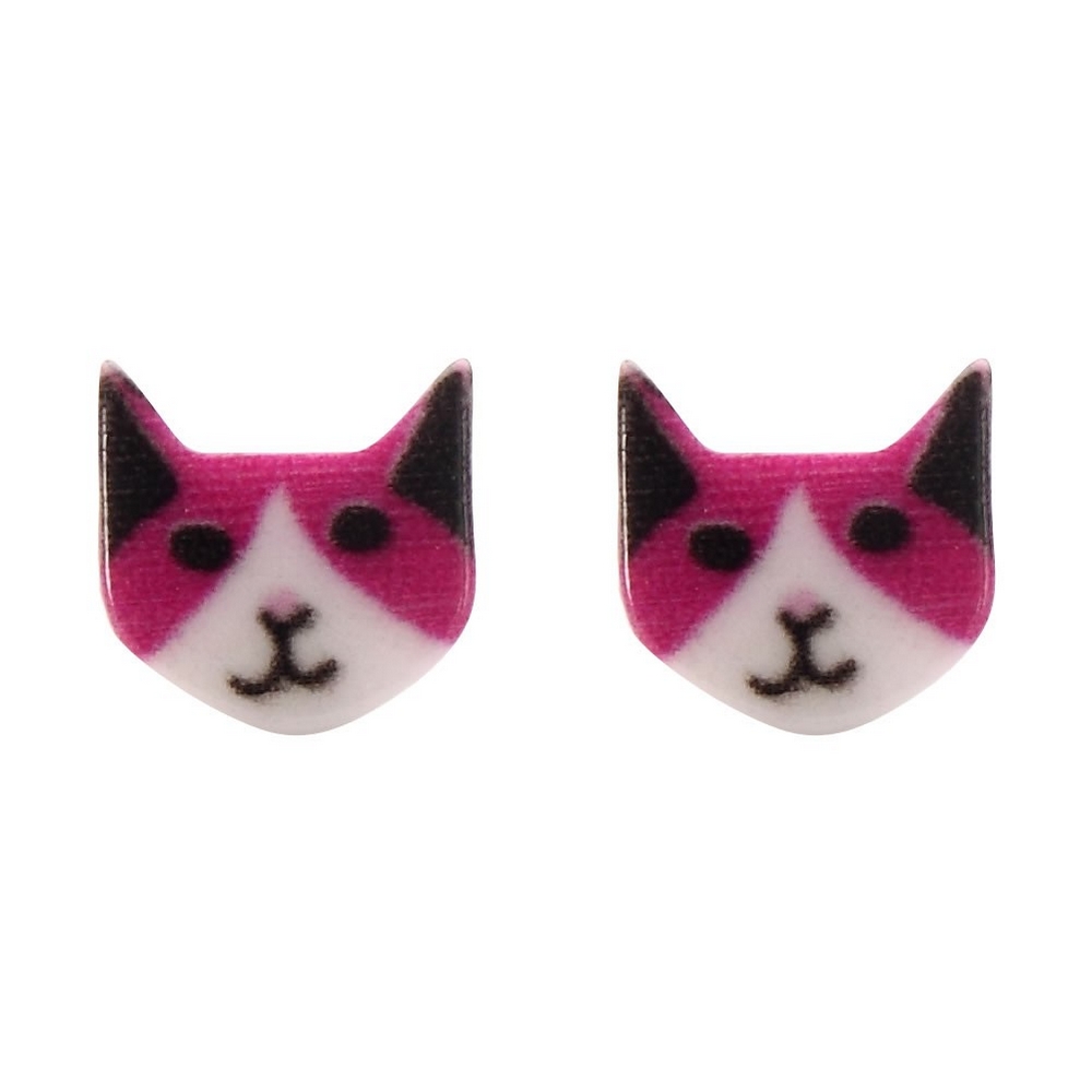 Be the first to review “Stud earring crafty cat face fuchsia pink & white”