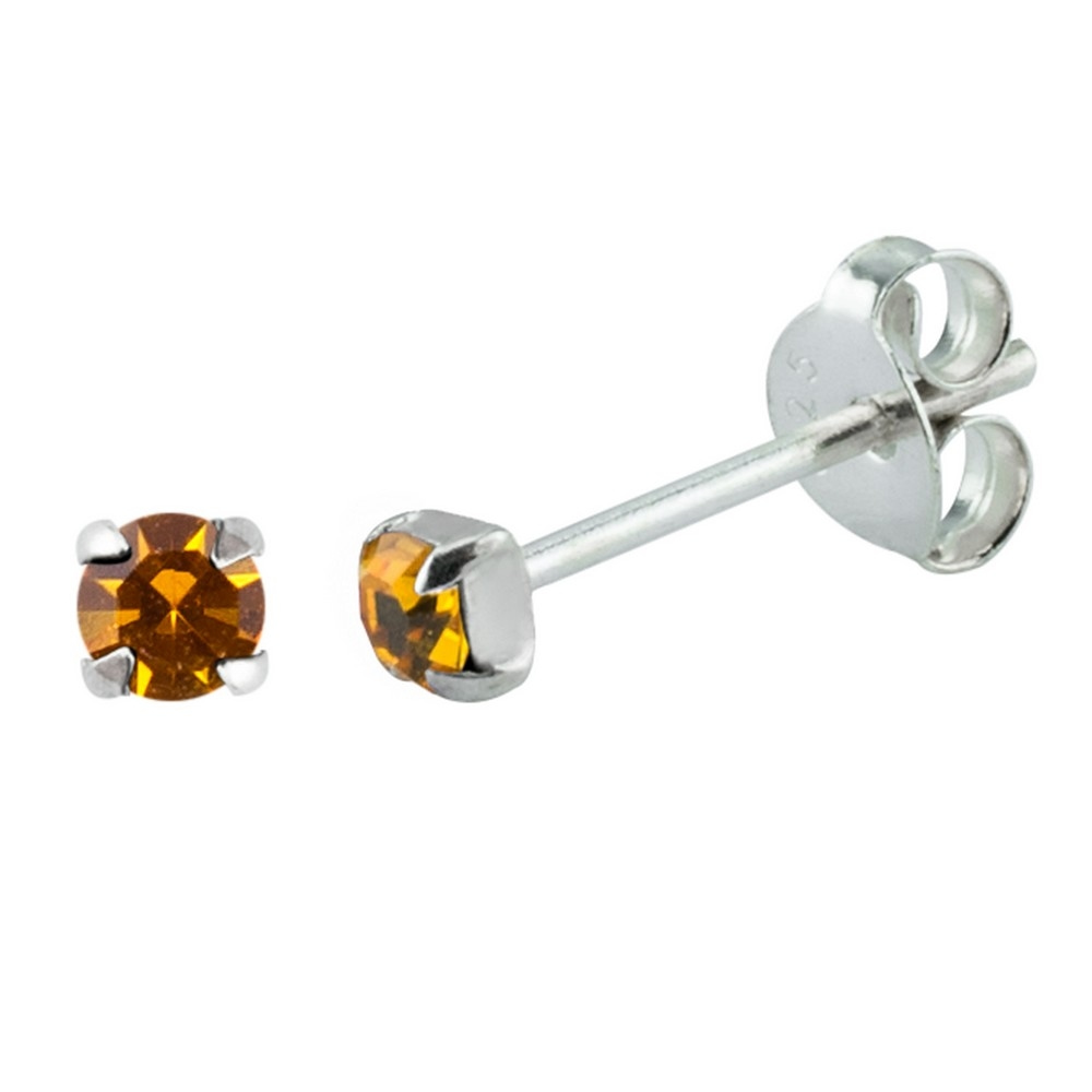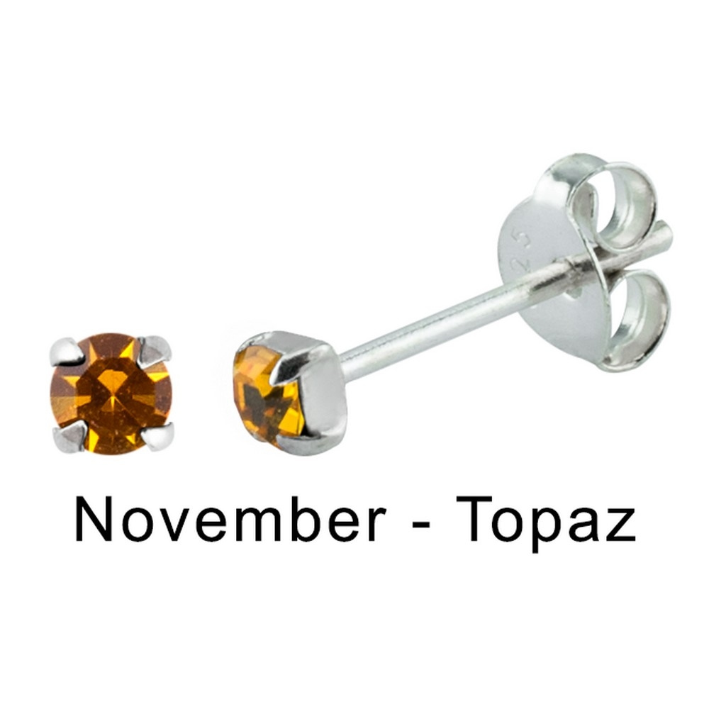 Stud Earring Birthstone In Claw Setting – November Topaz Made With 925 Silver & Crystal Glass