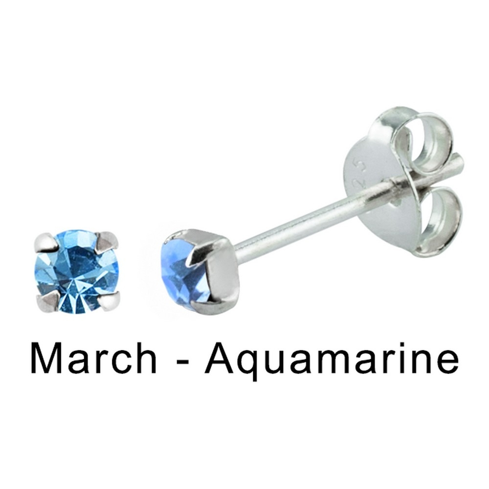 Stud Earring Birthstone In Claw Setting – March Aquamarine Made With 925 Silver & Crystal Glass