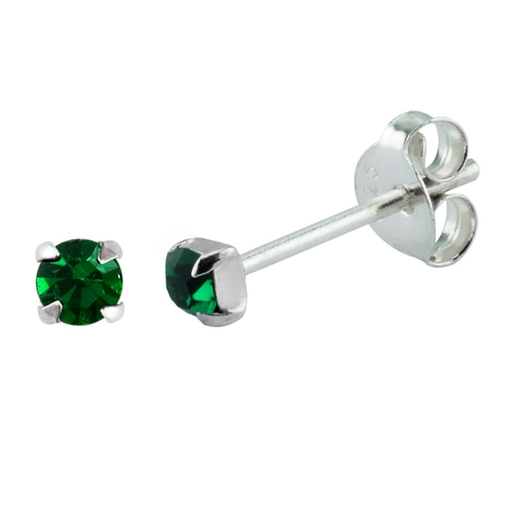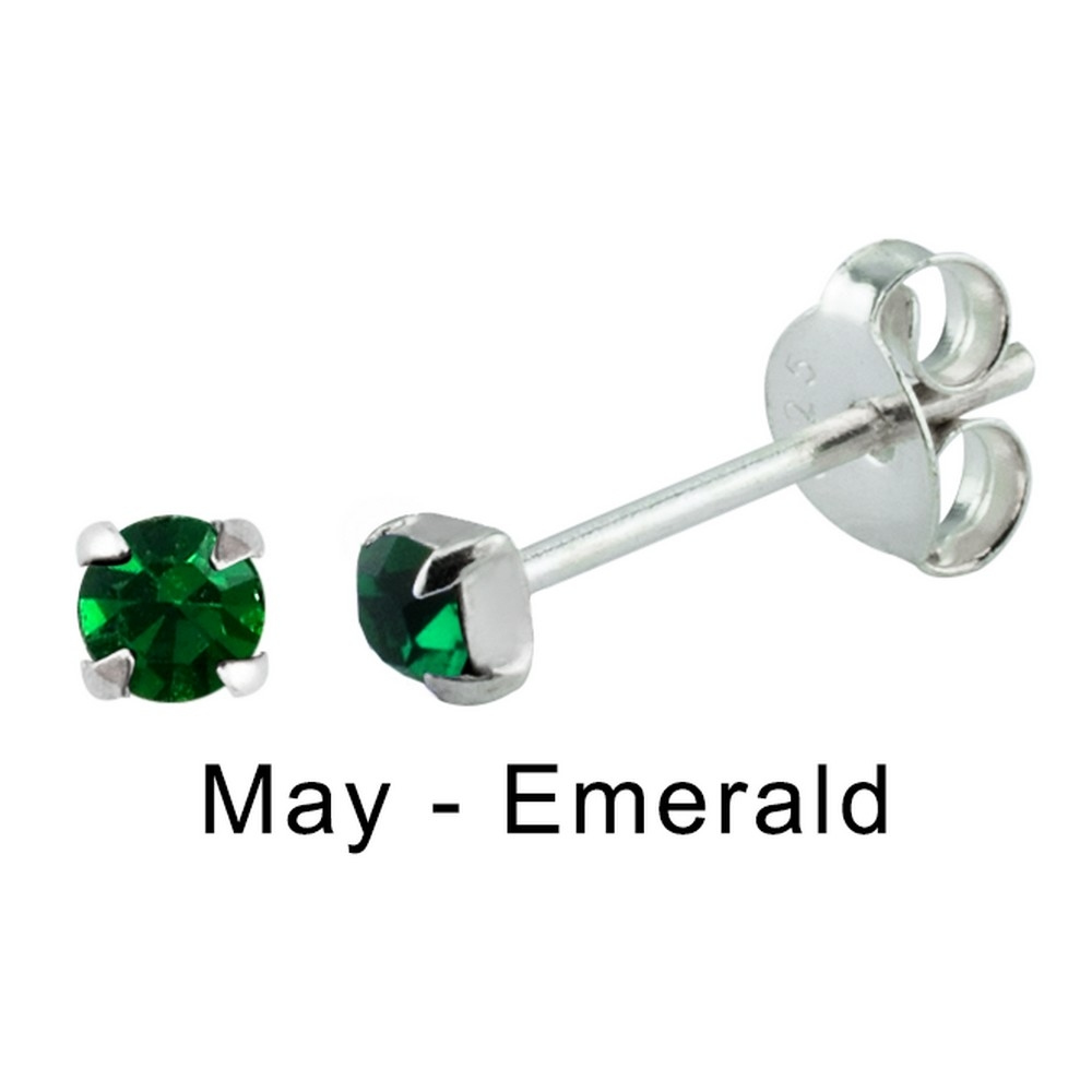 Stud Earring Birthstone In Claw Setting – May Emerald Made With 925 Silver & Crystal Glass
