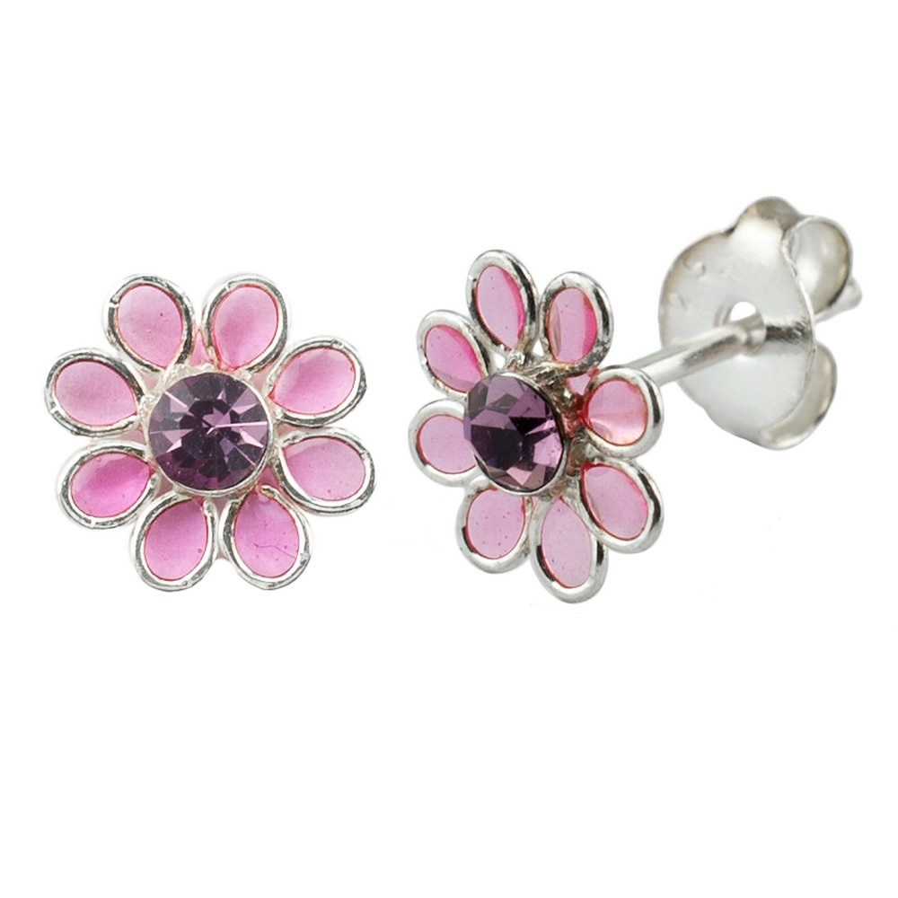 Stud Earring Birthstone Flower June Light Amethyst Made With 925 Silver & Crystal Glass