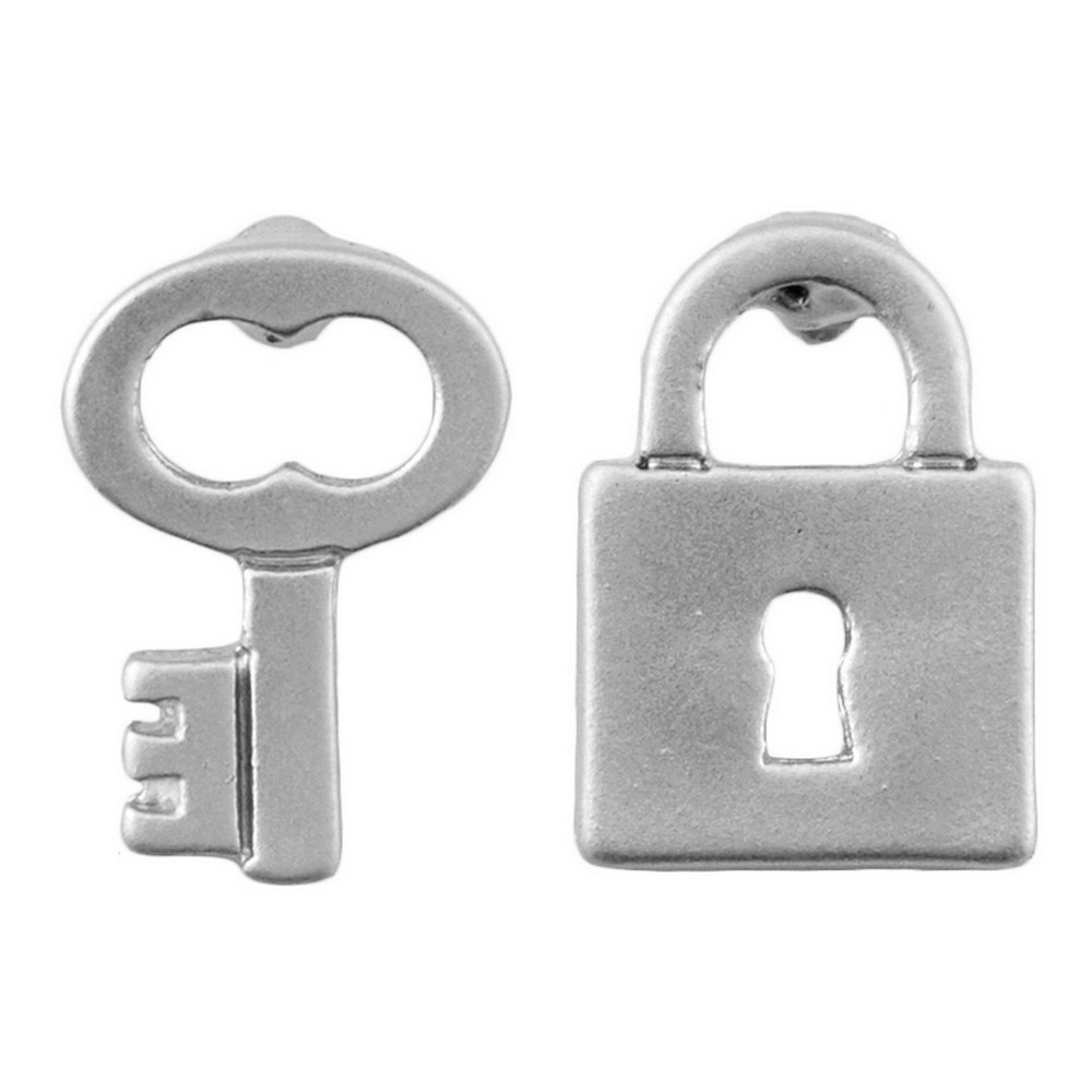 Stud earring lock & key silver