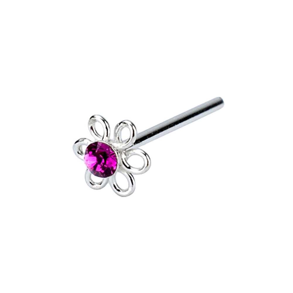 Nose Stud Single Crystal Flower Made With 925 Silver & Crystal Glass