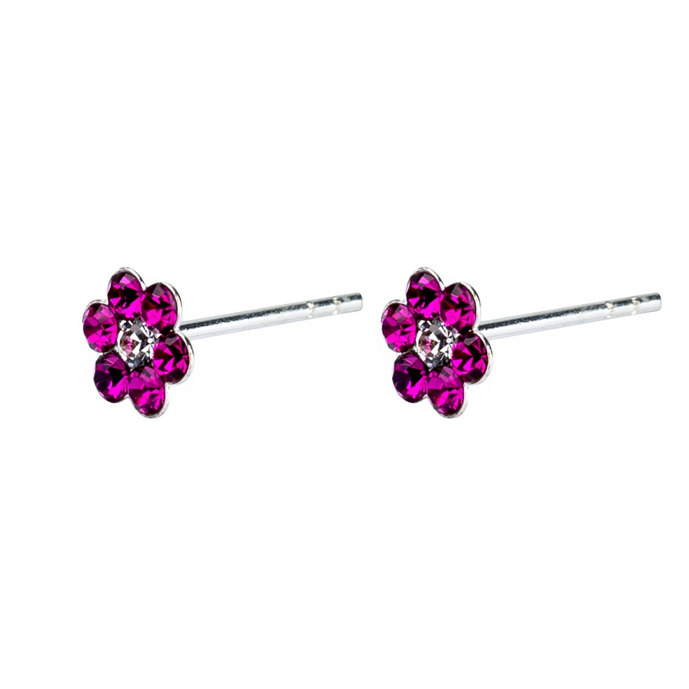 Stud Earring 7 Crystal Flower Made With 925 Silver & Crystal Glass