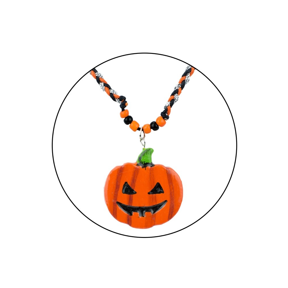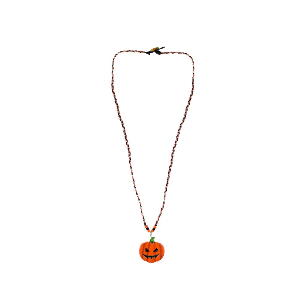 Necklace Pumpkin Two Bottom Row Teeth Made With Wood & Linen