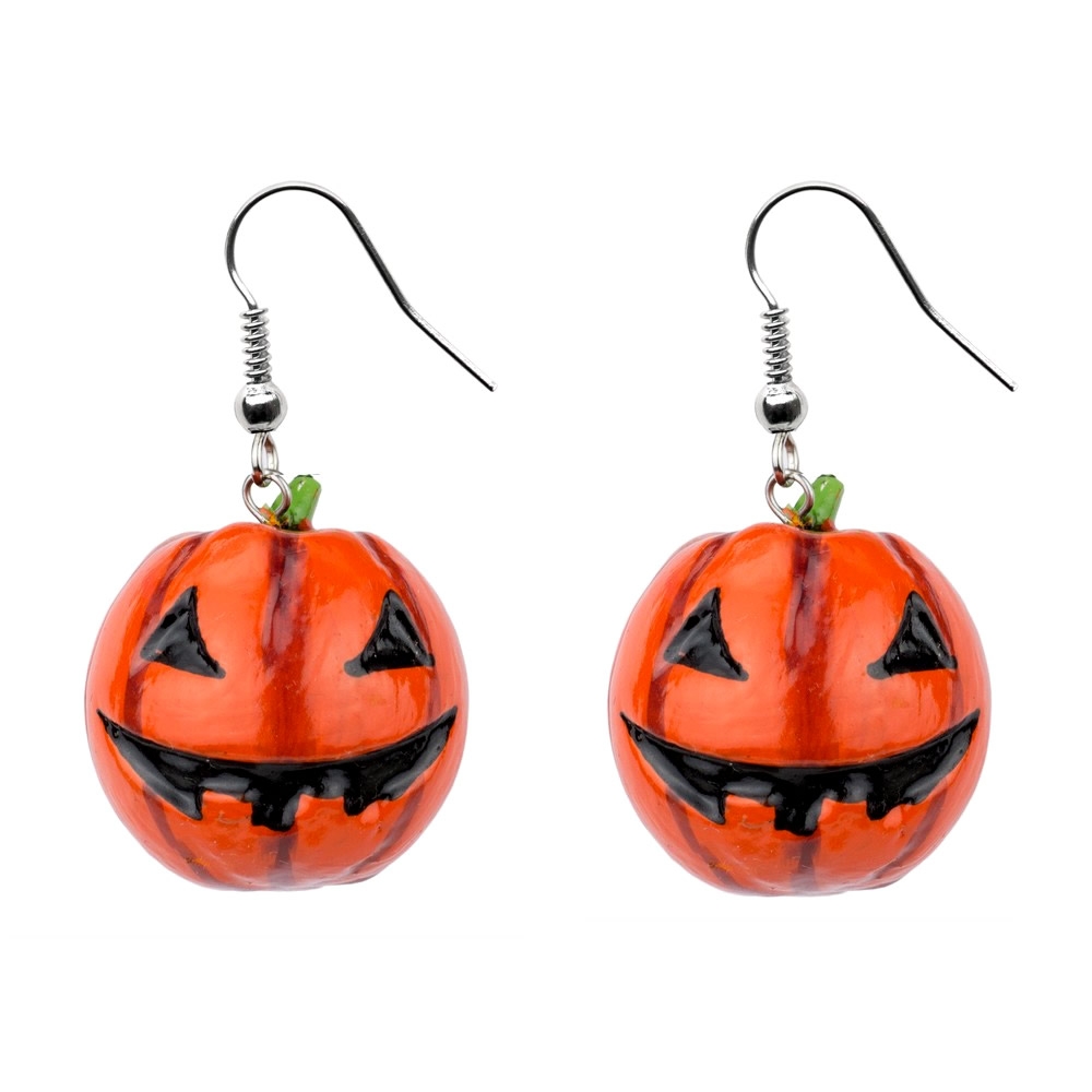 Drop Earring Pumpkin Two Bottom Row Teeth Made With Wood