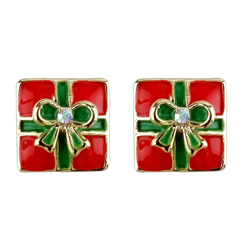 Stud Earring Christmas Small Made With Crystal Glass & Enamel