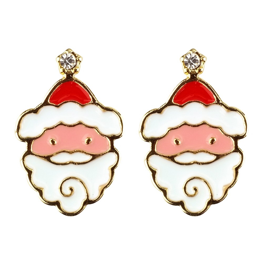Stud Earring Christmas Santa Made With Crystal Glass & Enamel