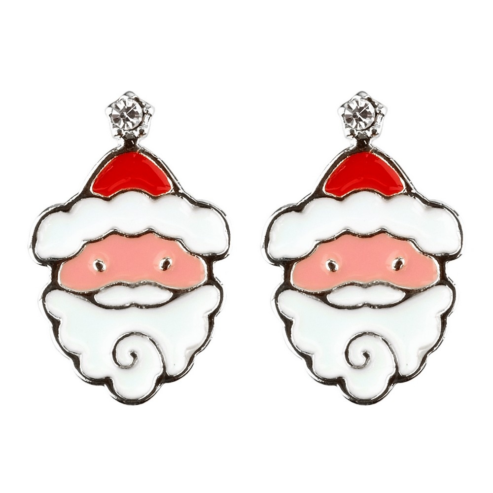 Stud Earring Christmas Santa Made With Crystal Glass & Enamel