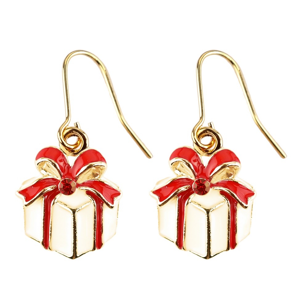 Drop Earring Christmas On Gift Card Made With Crystal Glass & Enamel