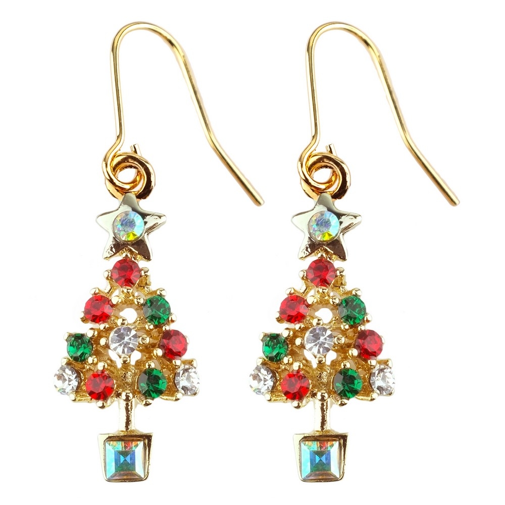 Drop Earring Christmas On Gift Card Made With Crystal Glass & Enamel