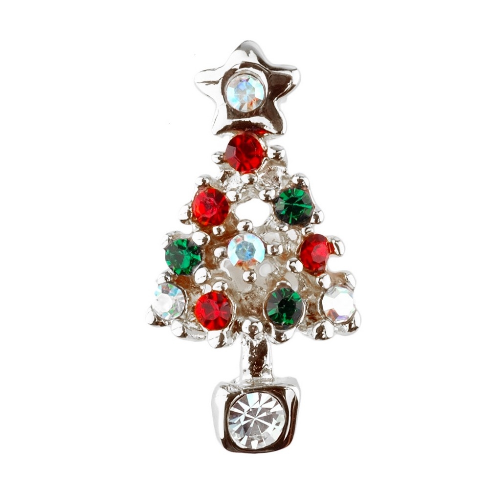 Clutch Pin Brooch Christmas Gift Card Tree Made With Crystal Glass & Enamel