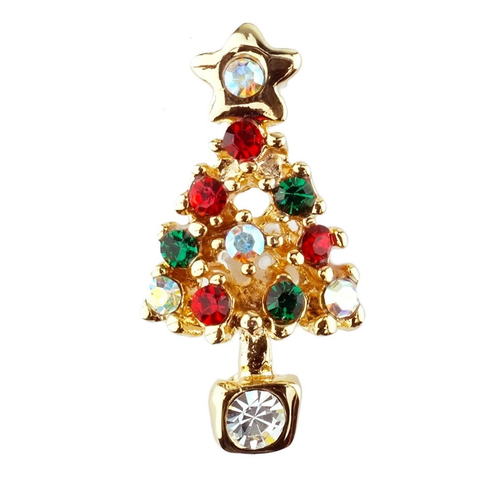 Clutch Pin Brooch Christmas Gift Card Tree Made With Crystal Glass & Enamel