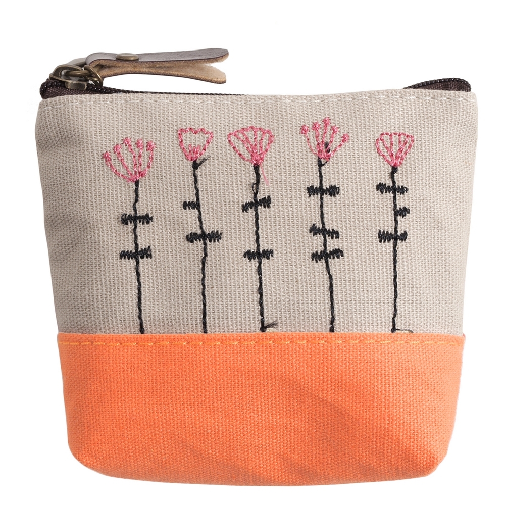 Coin Purse Stitched Plant Graphic Made With Cotton