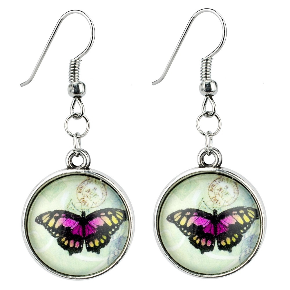 Be the first to review “Drop earring glass illustrated butterfly yellow & pink”