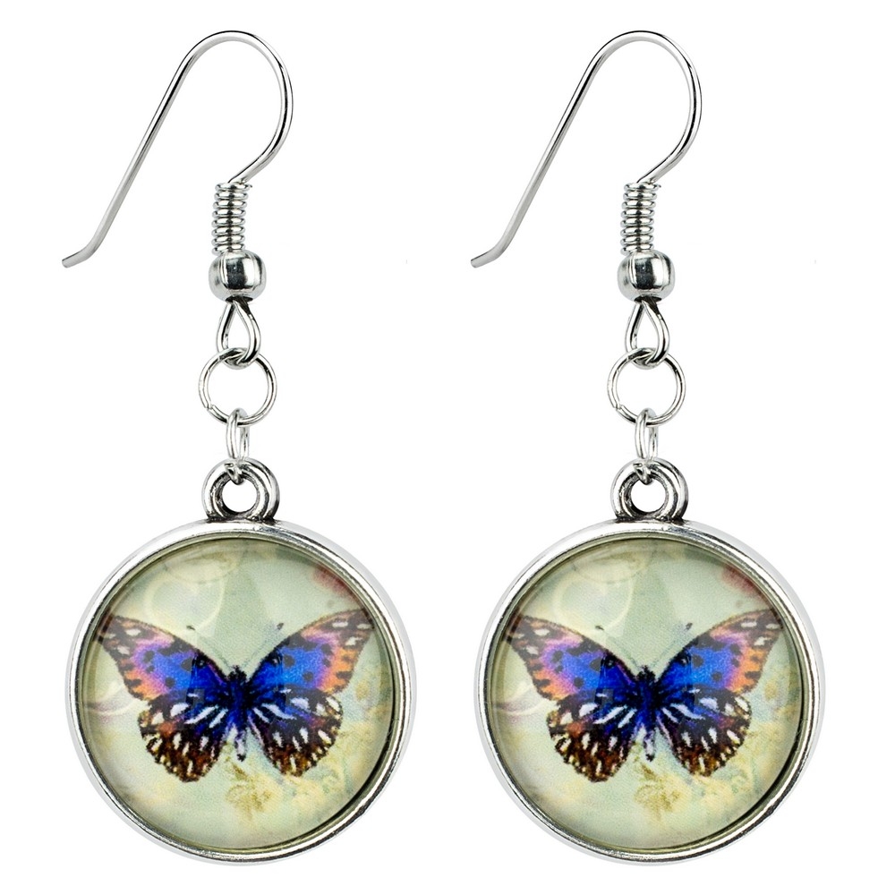 Be the first to review “Drop earring glass illustrated butterfly blue & orange”