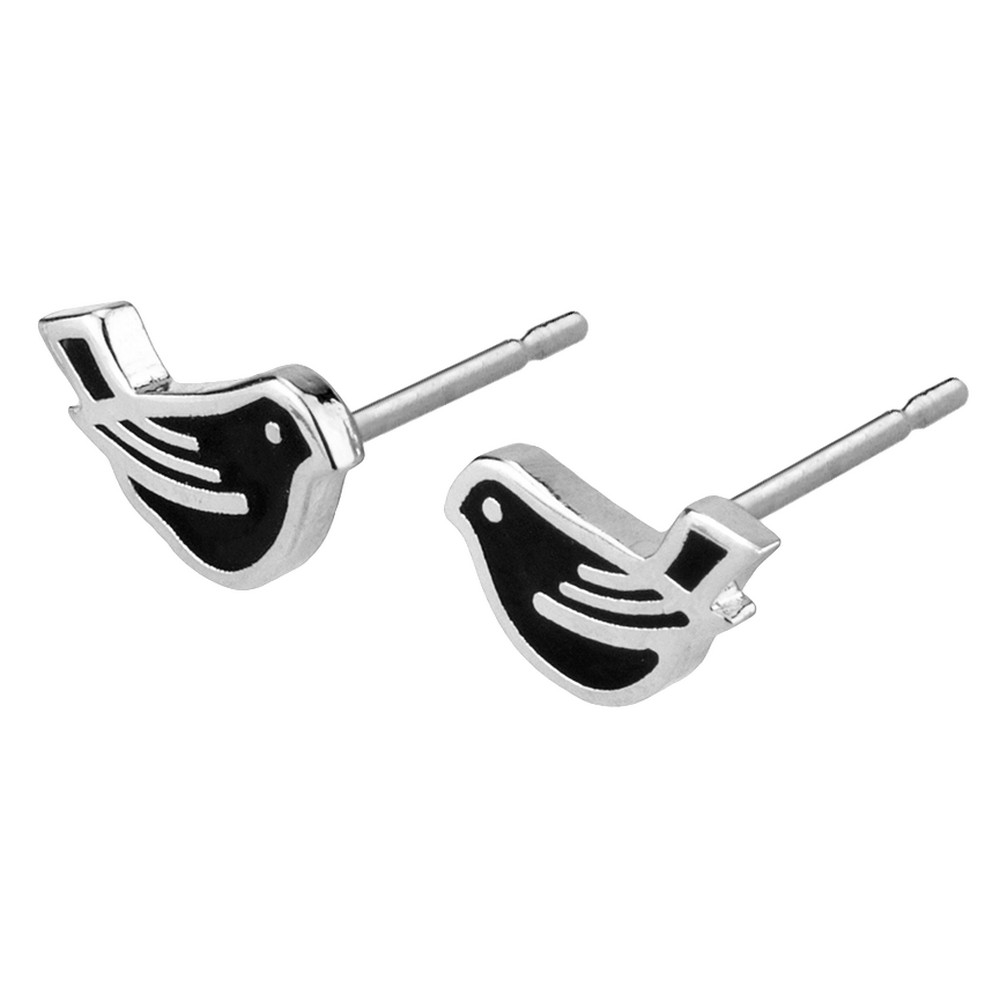 Stud earring enamel bird silver