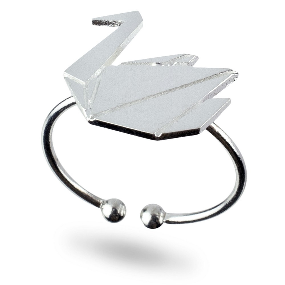 Ring matte origami swan silver