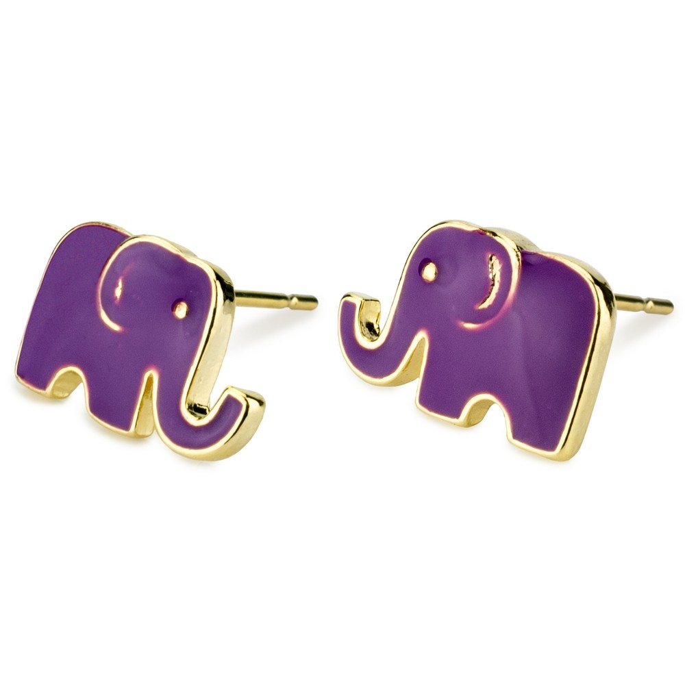 Stud earring enamel elephant purple