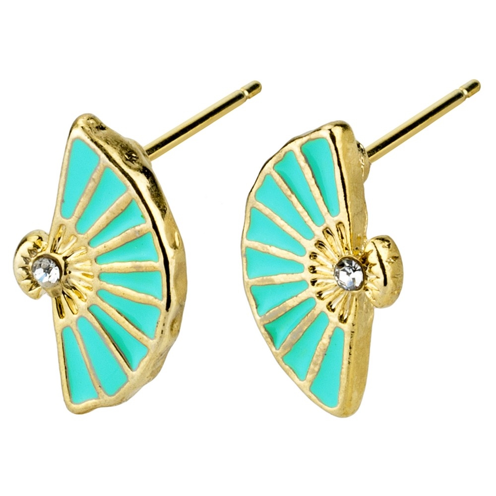 Stud earring enamel geisha fan turquoise blue