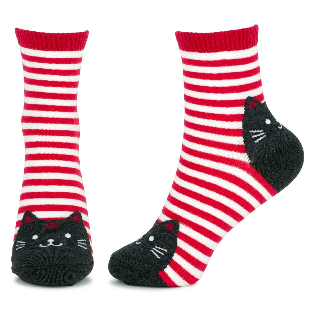 These stripey fun feline socks are an instant hit for cat lovers! These socks also come in pink stripes and grey and grey stripes and mint green.