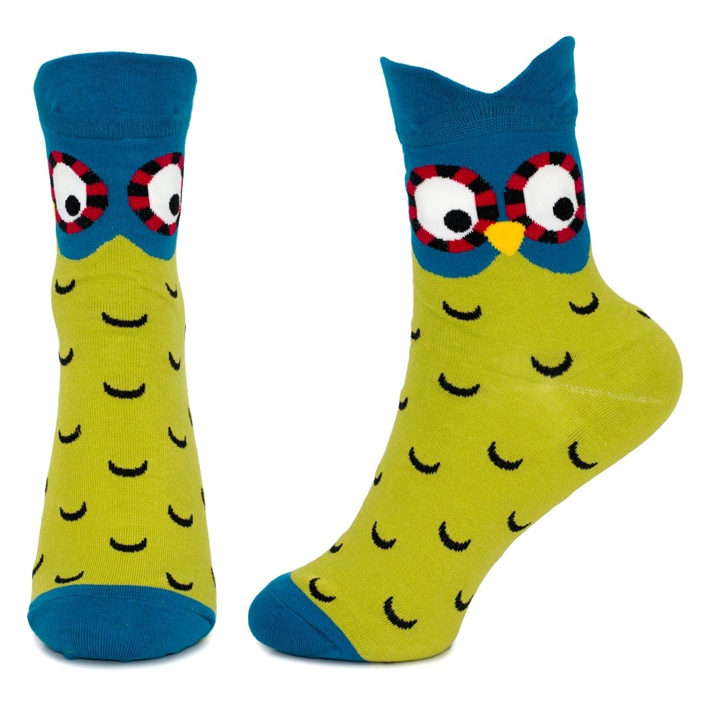 These great owl socks dazzle in bright green and are a real hoot for all! These owl design socks also come in navy and red- black and grey. These socks are a wise choice!