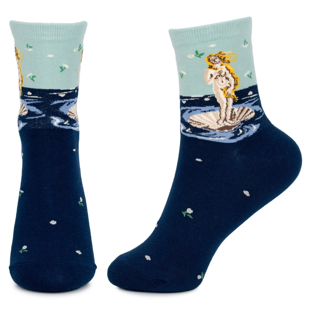 Botticelli’s The Birst of Venus is a stunning masterpiece that highlights the beauty and grandeur of the master artists talent. Now you can enjoy this masterpiece as a pair of comfy socks.