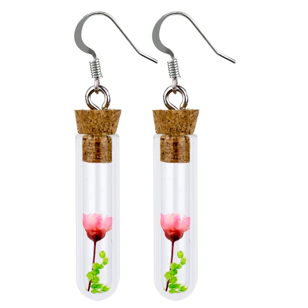 Be the first to review “Drop earring glass test tube flower vase light pink”