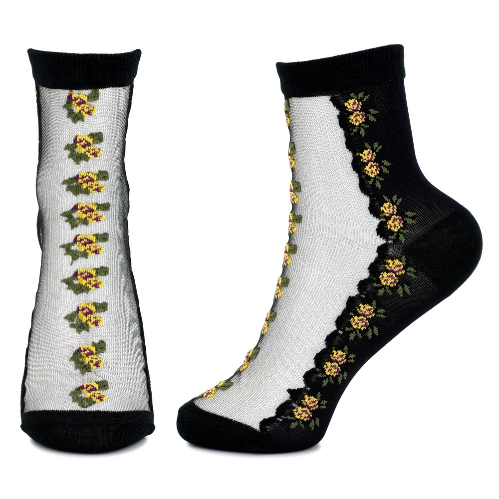The fine rose detailing on these socks make them subtly eye-catching and very aesthetically pleasing. A must have that embraces current feminine stylings. Also available with red and purple roses.