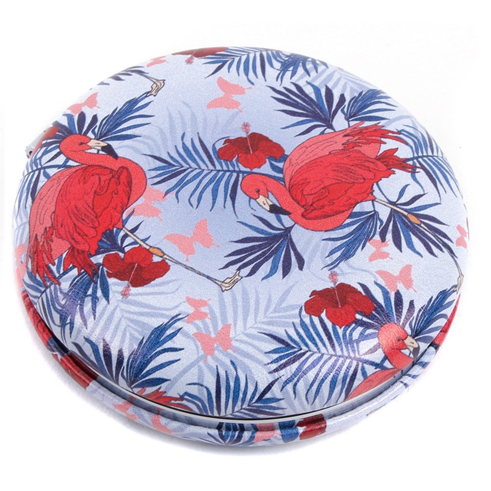 Compact mirror glass macaron style flamingo parade blue