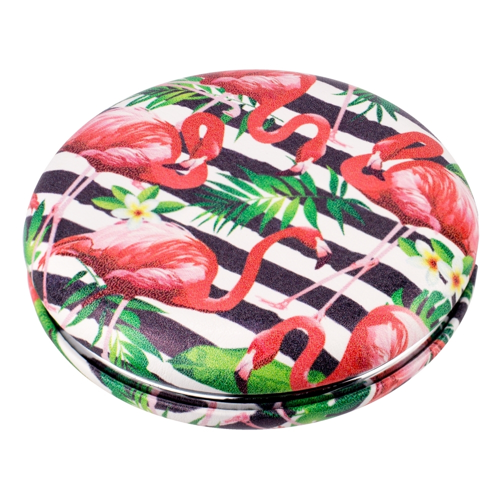 Compact mirror glass macaron style flamingo parade pink