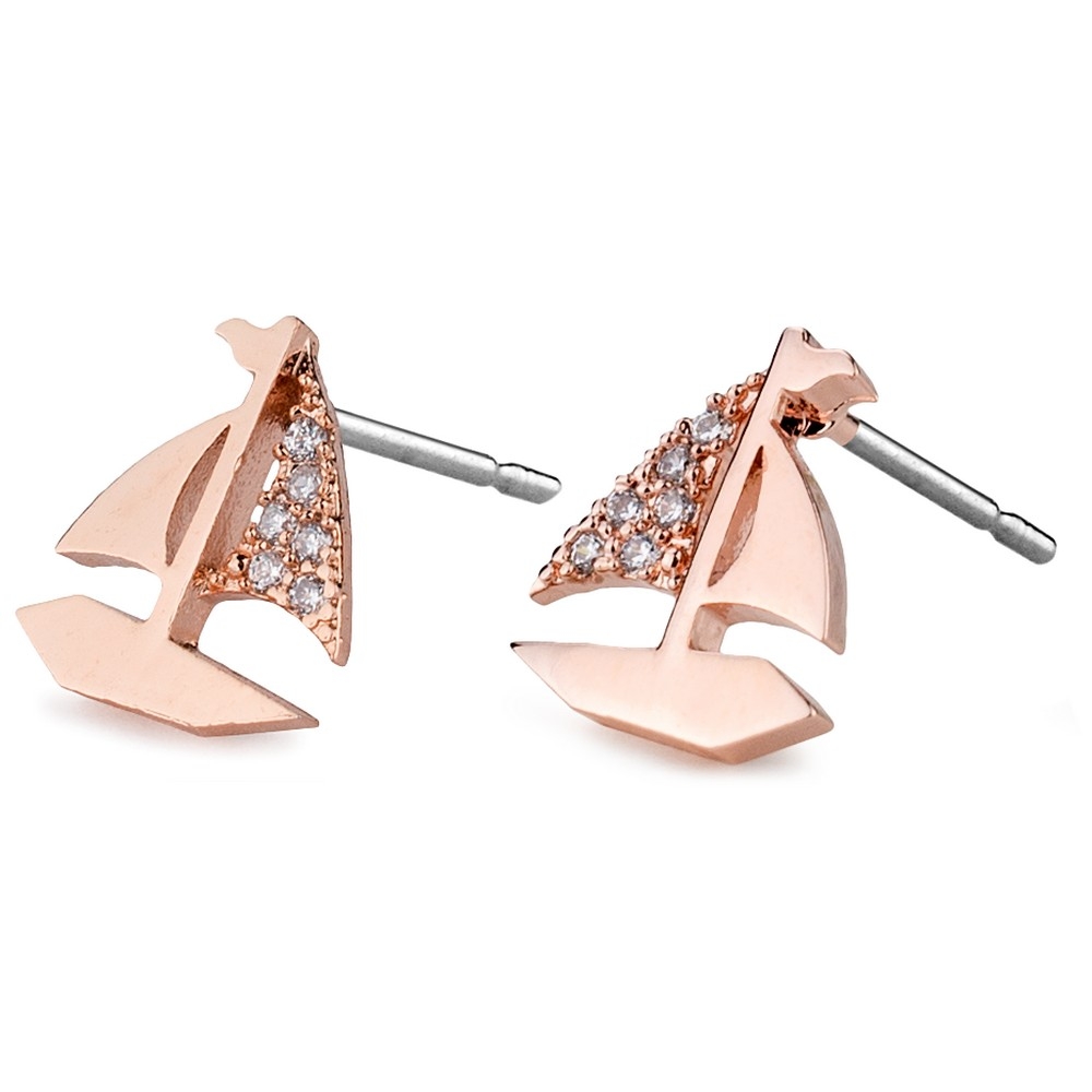 Stud earring crystal glass sailboat rose gold