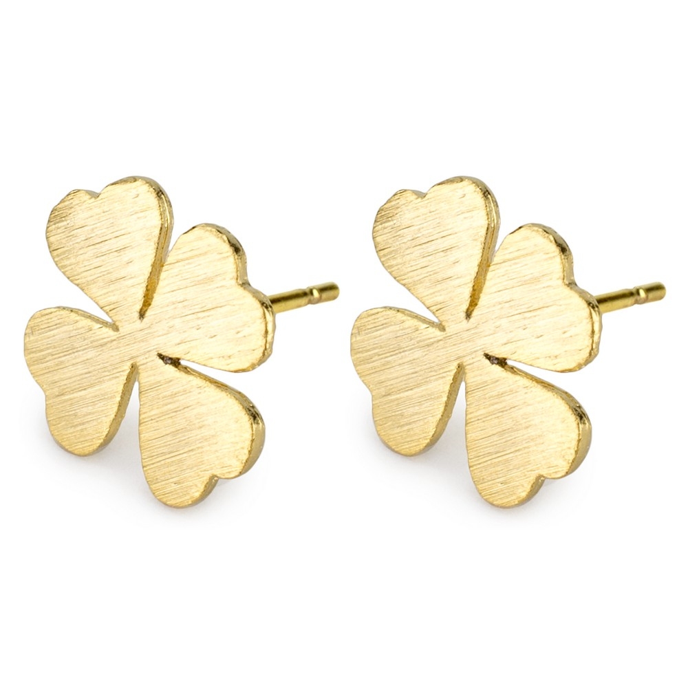 Stud earring four leaf clover gold