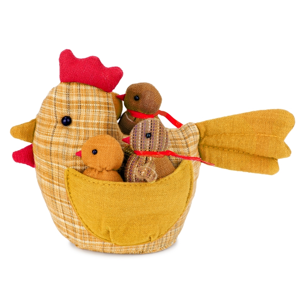 Ornament Soft Tartan Hen With 4 Chicks Made With Cotton