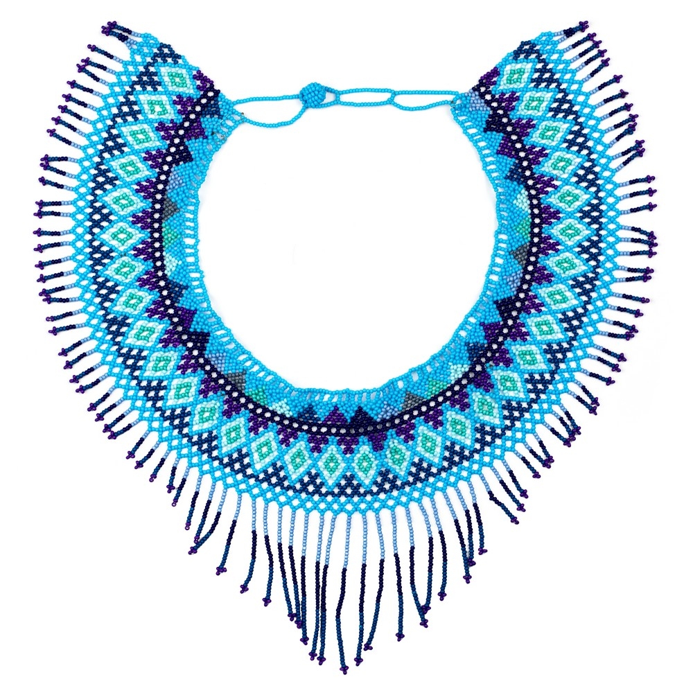 With colourful joy- this Necklace will add that final spicy touch. A bit ethnic- a bit catwalk- this is bang on trend. Bead is our favourite choice for making the detail in this neat product. Mexico style with a difference!